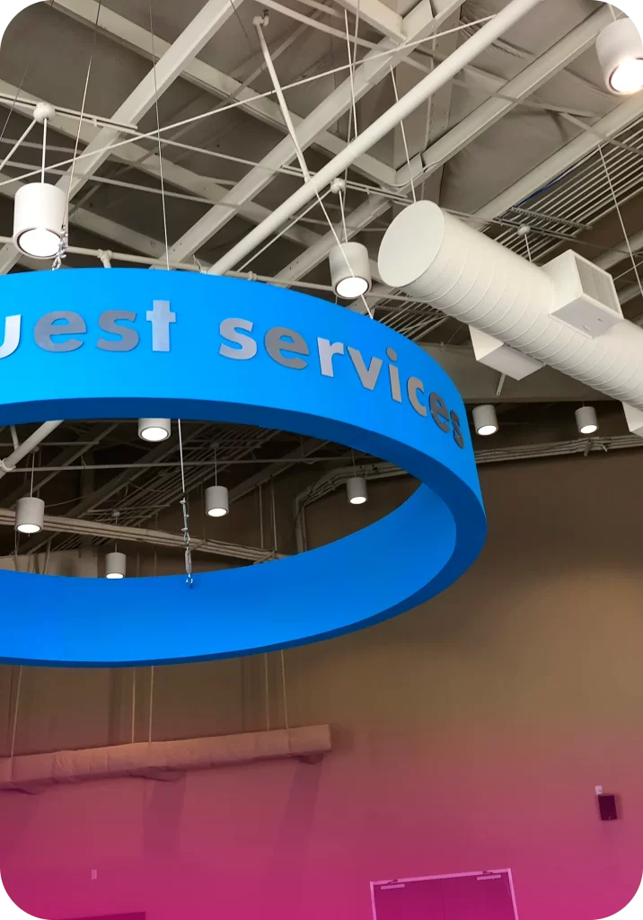 MSK helps you plan and install floor and ceiling signage systems that organize space and elevate user experience.